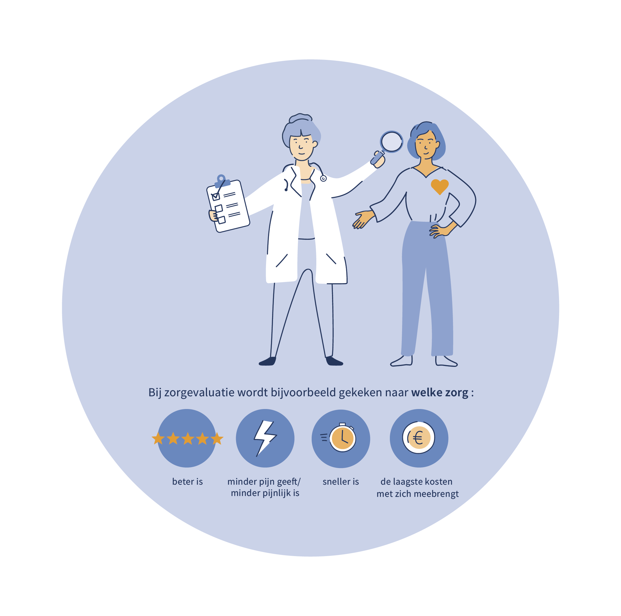 Van veel bestaande zorg is nog onbekend of het van meerwaarde is. Om te bepalen welke zorg voor welke patiënt wanneer van meerwaarde is voeren we onderzoek uit. Dat noemen we zorgevaluatie. Zo kijken we bijvoorbeeld of een diagnostische test (zoals een scan of een bloedtest) wel of niet zinvol is, welke behandelingen of geneesmiddelen het meest (kosten-)effectief zijn en hoe vaak mensen op controle moeten komen voor hun aandoening.